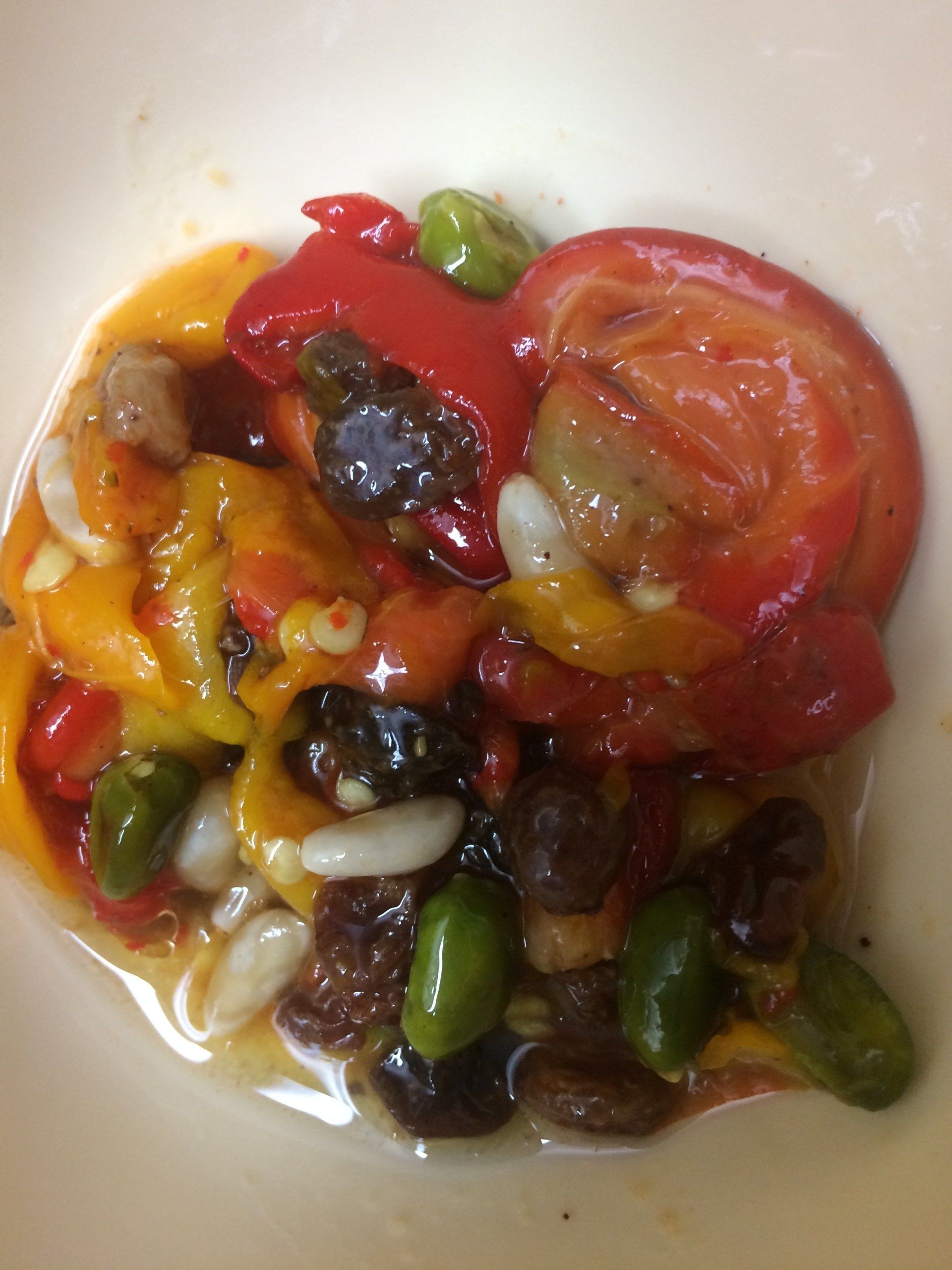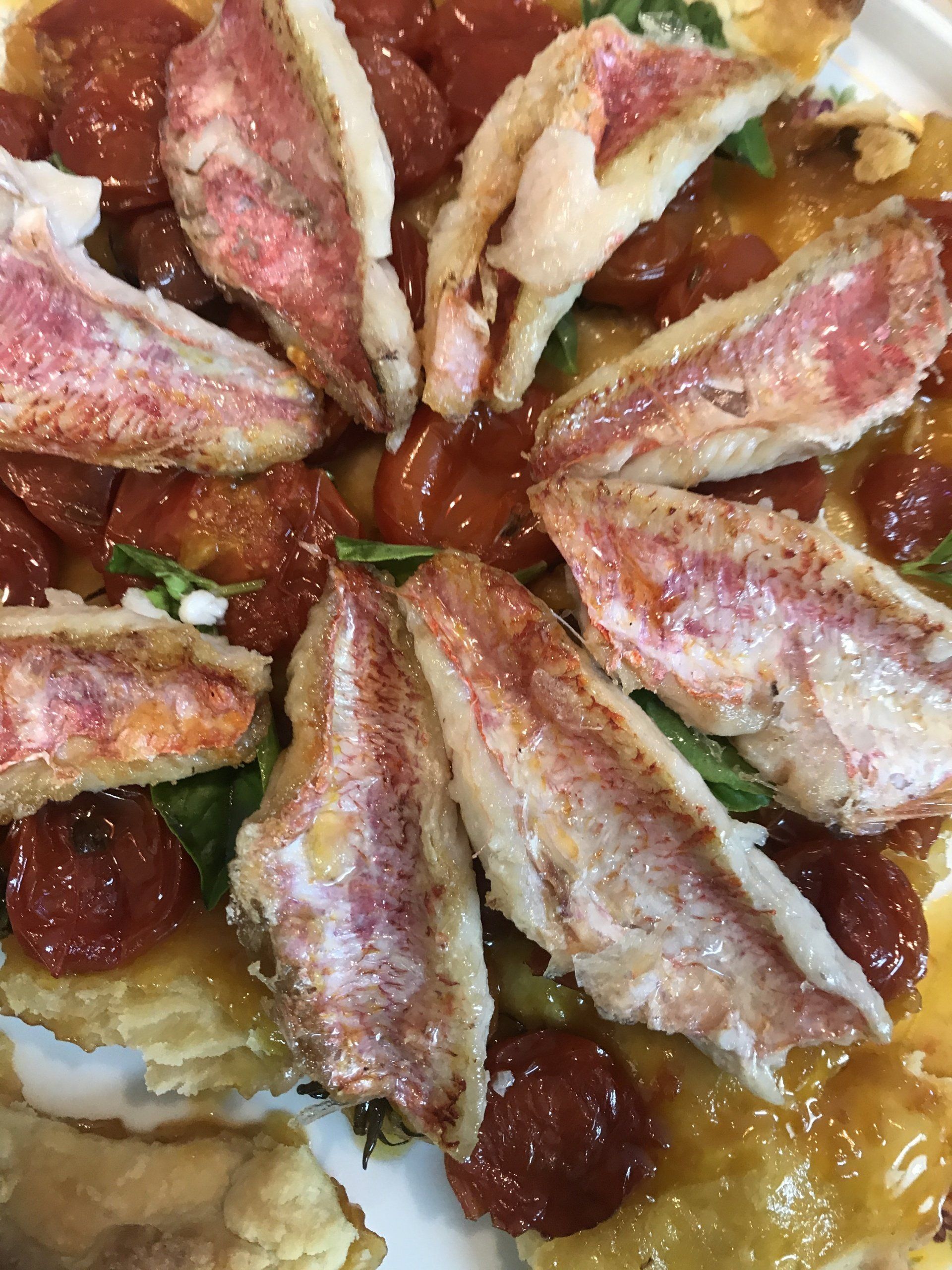 Suit une assiette d'antipasti , soit "di mare" diverses préparations à base de produits de la mer et de légumes, selon la pêche. Soit "di terra" avec charcuterie corse (la vraie), caponata sicilienne, aubergines à la bonifacienne, beignets de courgettes ... Selon le jardin et le marché, j'assemble le meilleur de la cuisine méditerranéenne et des produits frais du jour. Parfois le plat principal sera in beau poisson, ou bien une assiette de pâtes "alla scogliera"